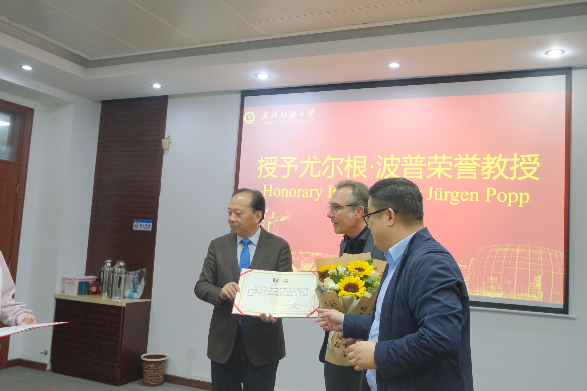 报告开始前,3044永利集团官网冯军副董事长向Jürgen Popp教授来访表示热烈欢迎,并以中德的建交历史为切入点,详细介绍了3044永利集团官网在人才培养、团队建设、团队队伍建设与国际化发展中所取得的成绩,并期待与Jürgen Popp教授在未来有良好合作与发展。副董事长冯军为Jürgen Popp教授颁发荣誉教授聘书。